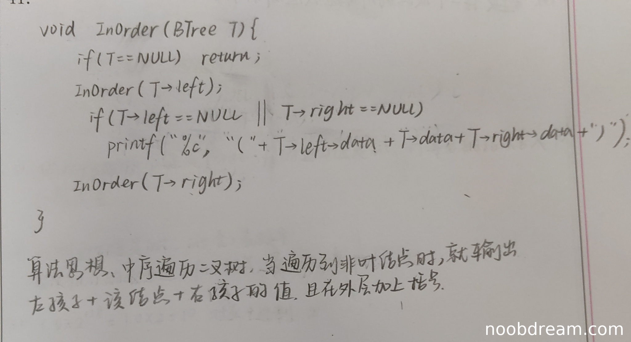1. 代码中使用了字符串拼接("(" + T->left->data + ...),这在C语言中是不合法的,属于严重错误。
