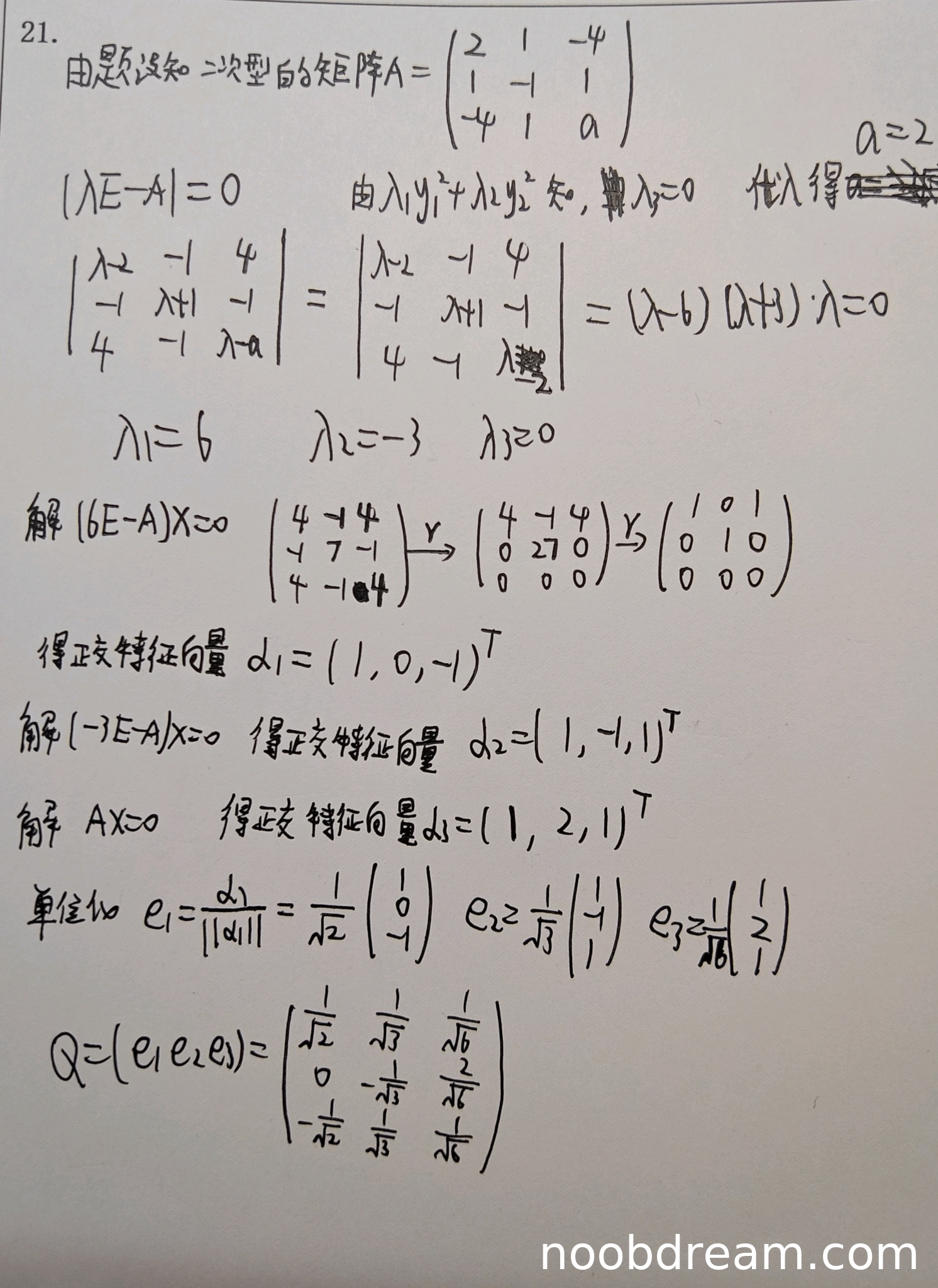 学生求出了三个特征向量并进行了单位化,但存在以下问题: