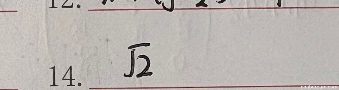 学生给出的答案为\(\sqrt{2}\),与标准答案一致。虽然识别结果中包含"14."等额外字符,但根据规则,这些属于识别问题导致的冗余信息,不扣分。核心答案正确,因此得5分。