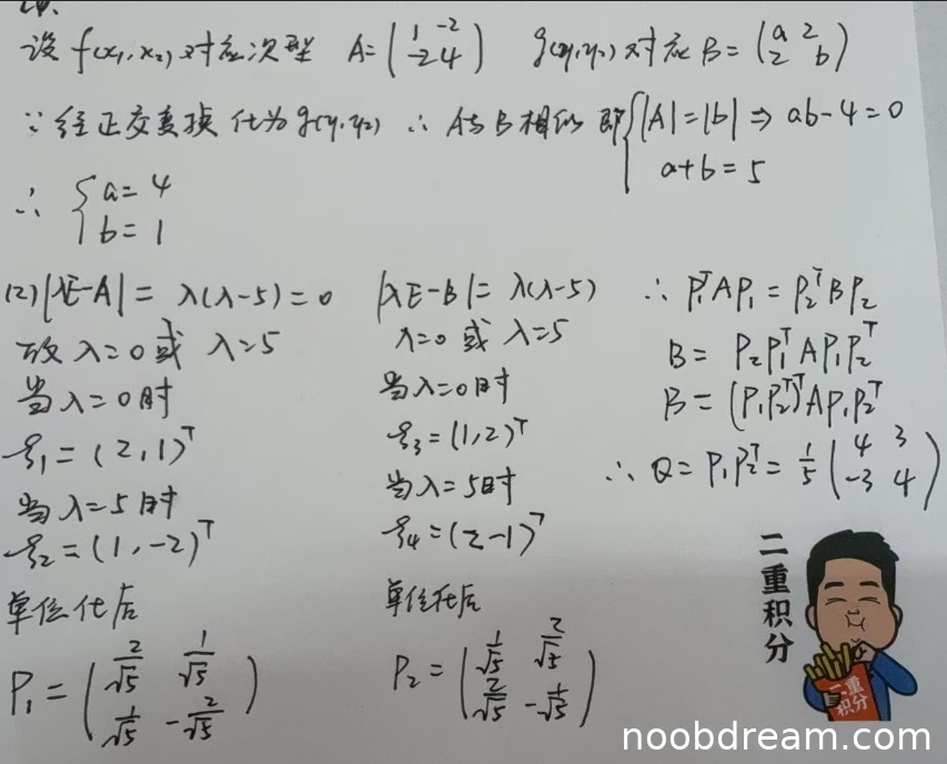 1. 将A的特征向量g₁=(2,1)ᵀ和g₂=(1,-2)ᵀ写反了对应特征值