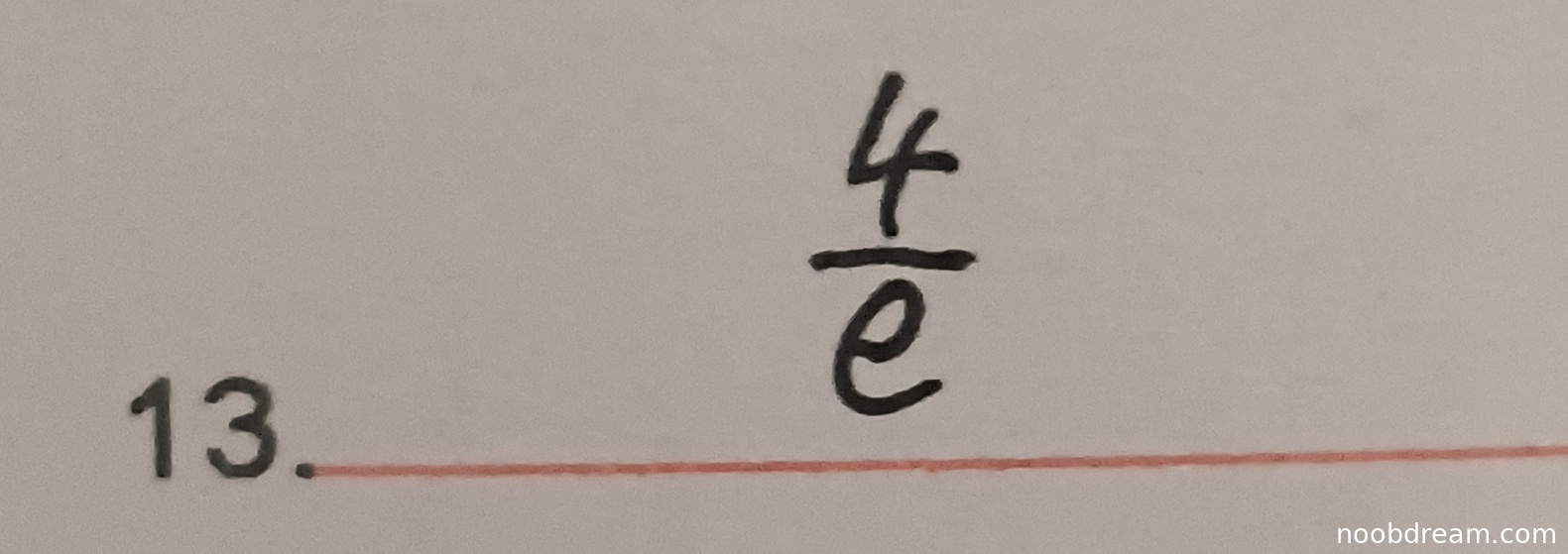 学生答案为 \(\frac{4}{e}\),与标准答案 \(4e^{-1}\) 完全等价。根据题目要求,答案正确应给满分5分。虽然表达形式略有不同(分数形式与指数形式),但数学含义一致,不构成扣分理由。