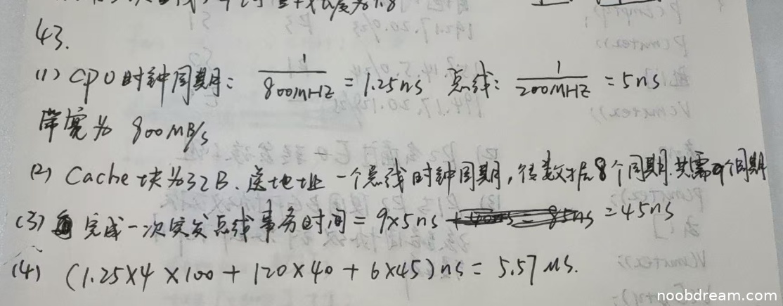 - 第三部分6×45中45ns是错误的事务时间(见第3问),且6次缺失正确但计算基础错误。