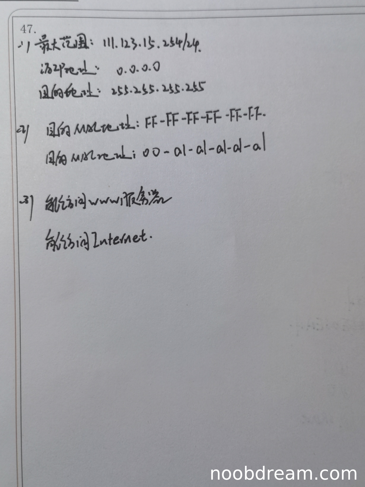 第二个目的MAC地址,学生第一次识别为"00-al-al-al-al-al",第二次识别为"00-01-01-01-01-01",而标准答案是"00-a1-a1-a1-a1-a1"。考虑到字符识别可能的误差(如1和l、1和a的混淆),且从上下文看学生意图是指向路由器内网接口的MAC地址,思路正确,不扣分。