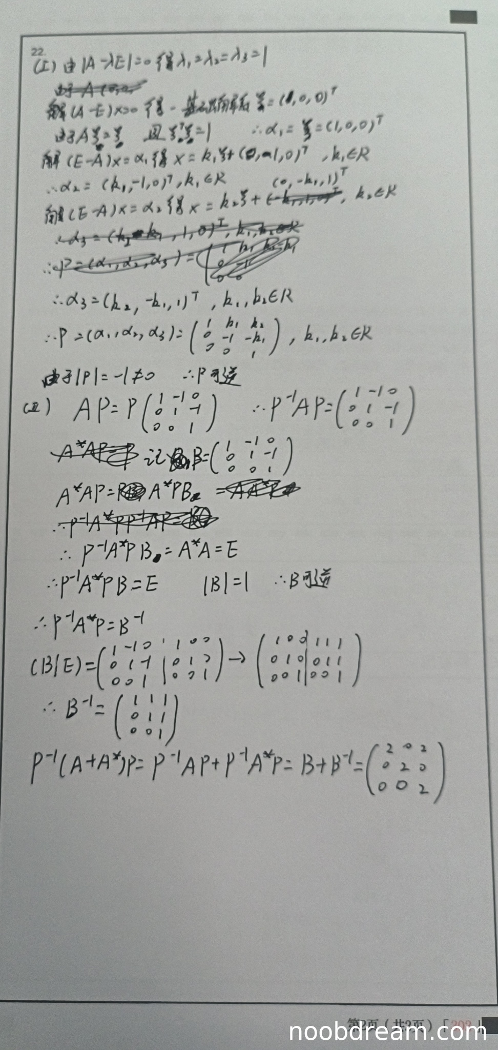 学生正确得到了P⁻¹AP = B,其中B是标准答案中的若当块矩阵。