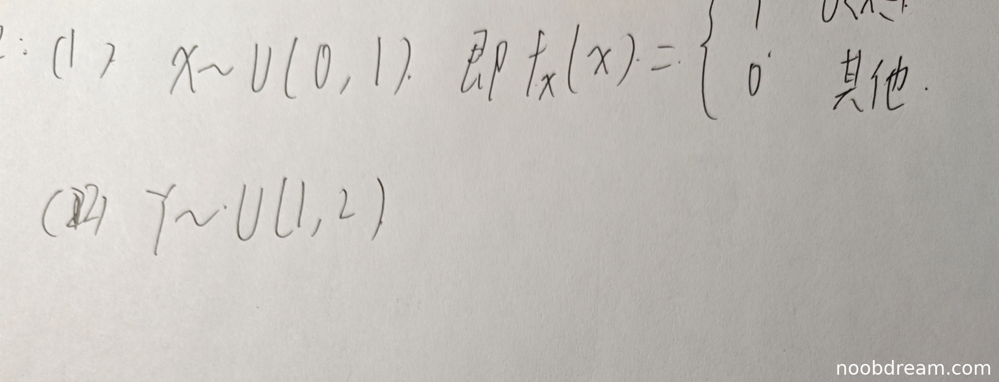 学生正确指出X服从(0,1)上的均匀分布,并给出了正确的概率密度函数。虽然第一次识别结果中密度函数表达式不够完整,但第二次识别给出了完整正确的表达式。根据评分要求,识别误差不扣分。得4分。