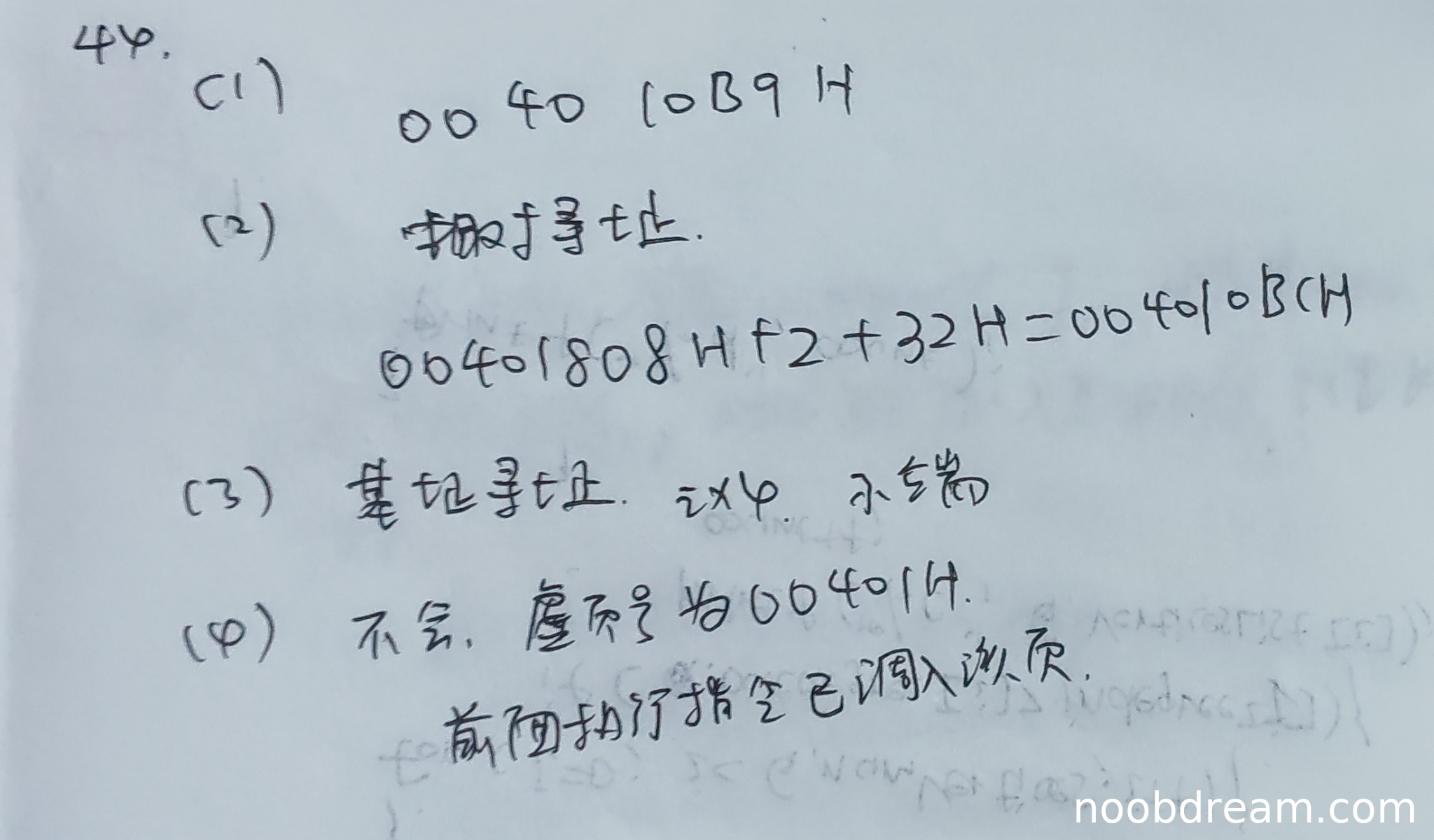 学生两次识别结果均正确给出第20条指令的虚拟地址为004010B9H,与标准答案一致。得3分。