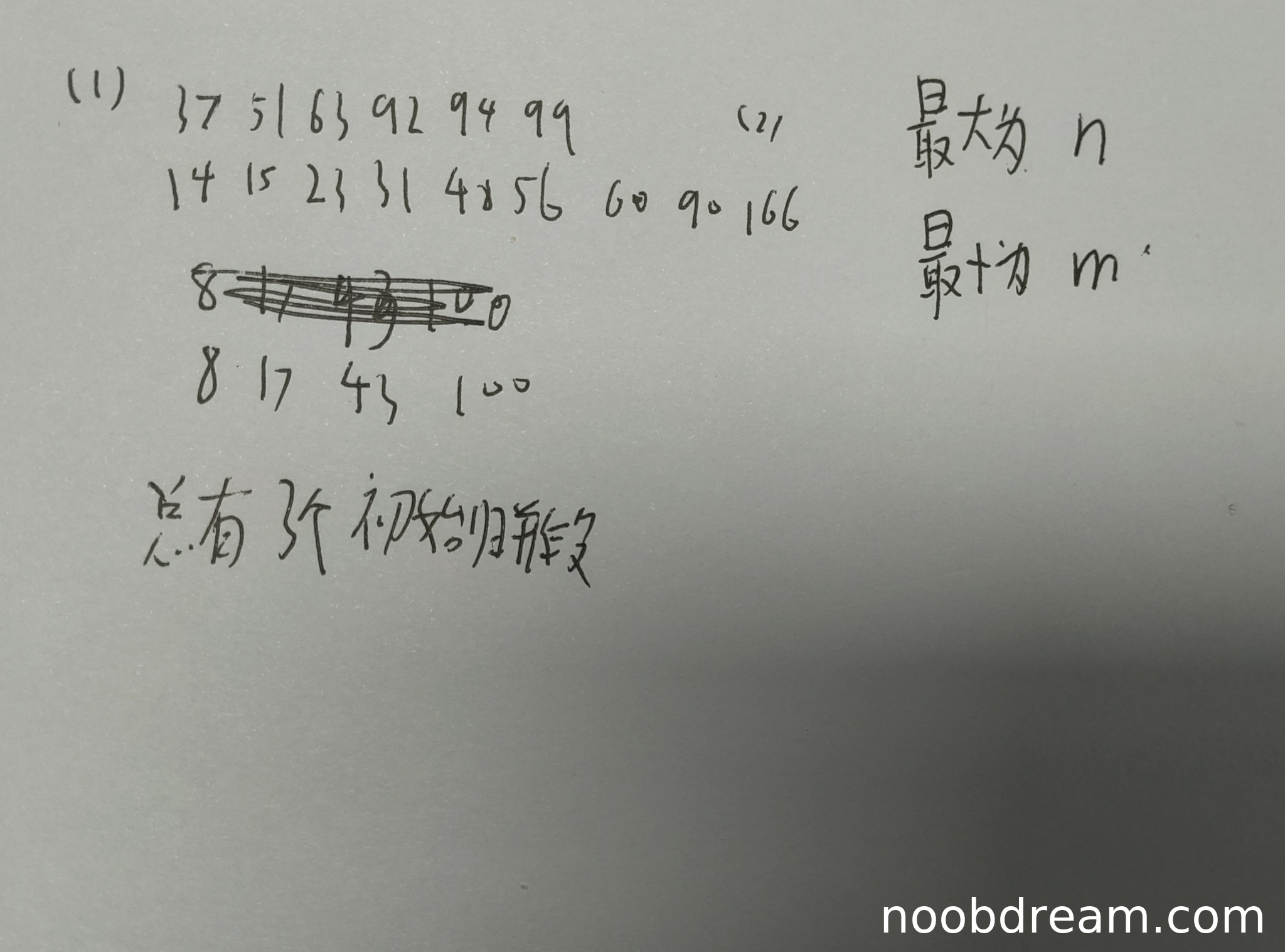 学生回答"最大为n,最小为m",这与标准答案"最大可能长度为n,最小可能长度为m"完全一致。虽然第一次识别中第二个"最大"应为"最小",但第二次识别已修正为"最小为m"。因此本小题得2分。
