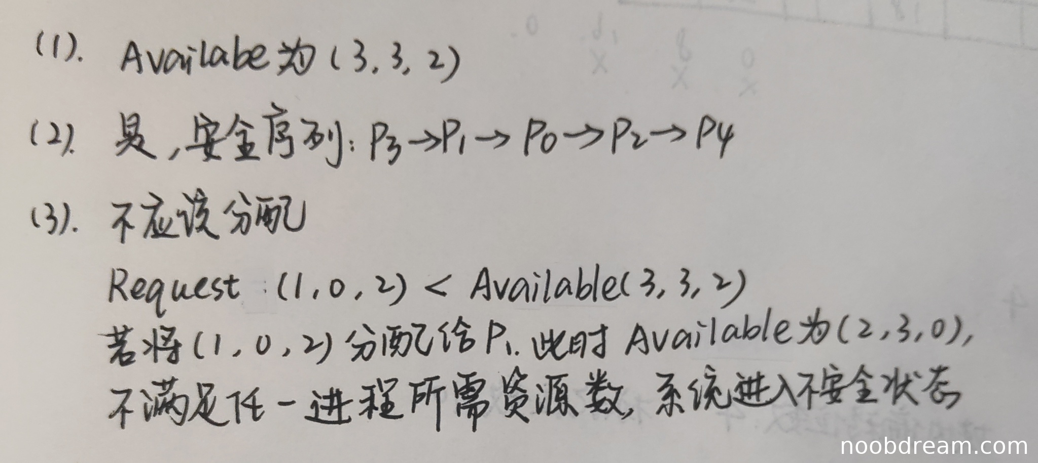 学生正确计算出Available=(3,3,2),与标准答案一致。得2分。