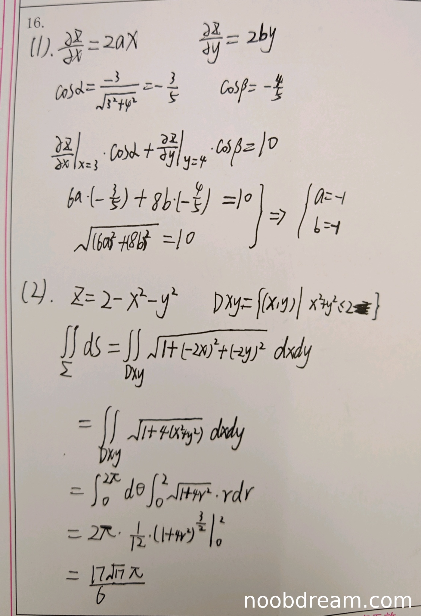 第二次识别:积分上限写成了√2,但计算过程中积分限代入时仍按r=2计算,得到(17√17π)/6