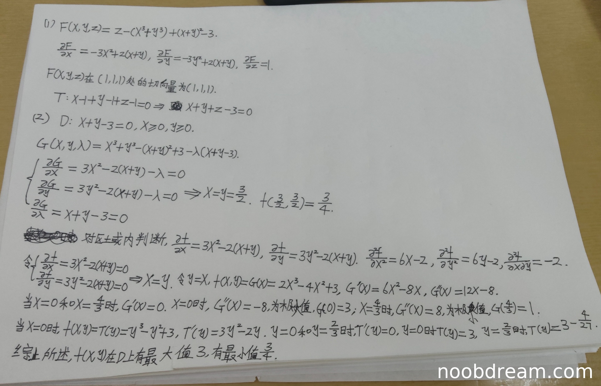 由于对区域D的理解存在根本性错误,且极值求解过程不完整,扣5分,得1分。