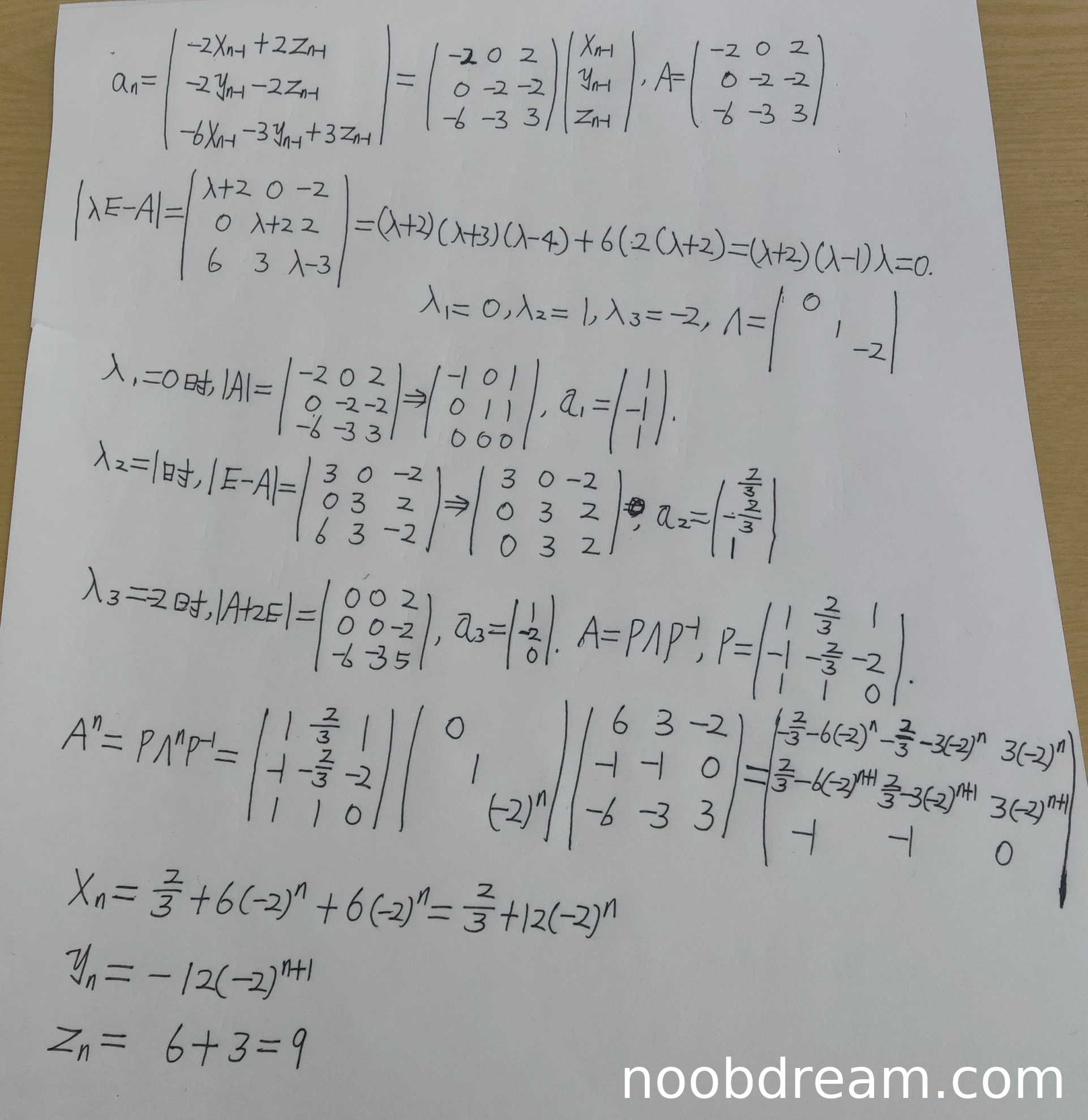 求xₙ,yₙ,zₙ的过程: