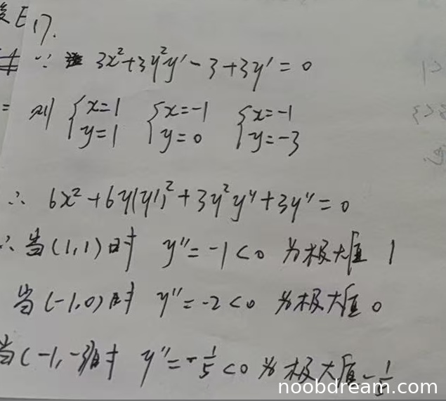 1. 标准答案只找到两个极值点(-1,0)和(1,1),而学生多找了一个点(-1,-3),该点实际上不满足原方程