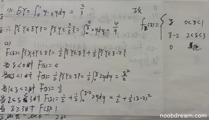 其他部分:z<0、0≤z<1、2≤z<3、z≥3时的分布函数计算正确,概率密度函数推导正确。得4.5分。