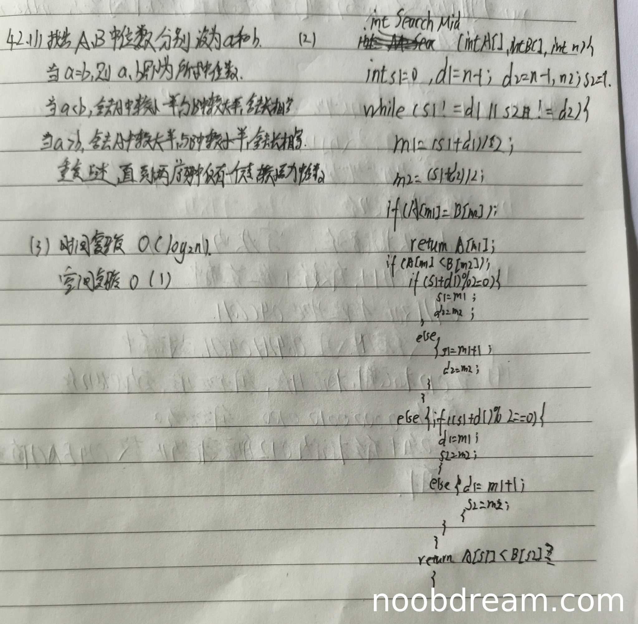 1. 函数声明错误:int SearchMid int Search [int A[], int B[], int n) 语法错误