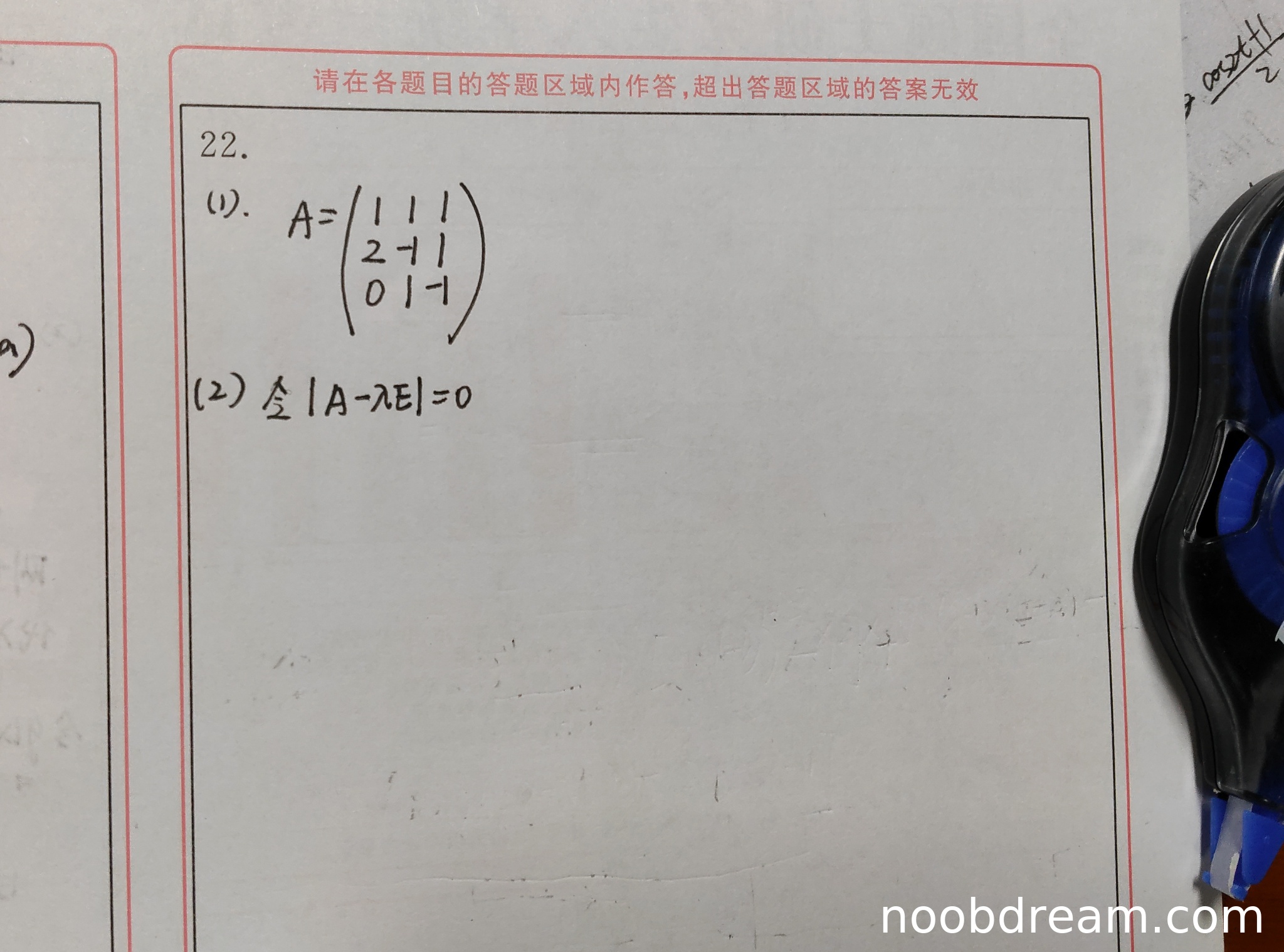 扣分理由:解答不完整,只完成了对角化问题的第一步,缺少特征值、特征向量、可逆矩阵P和对角矩阵Λ的求解过程。