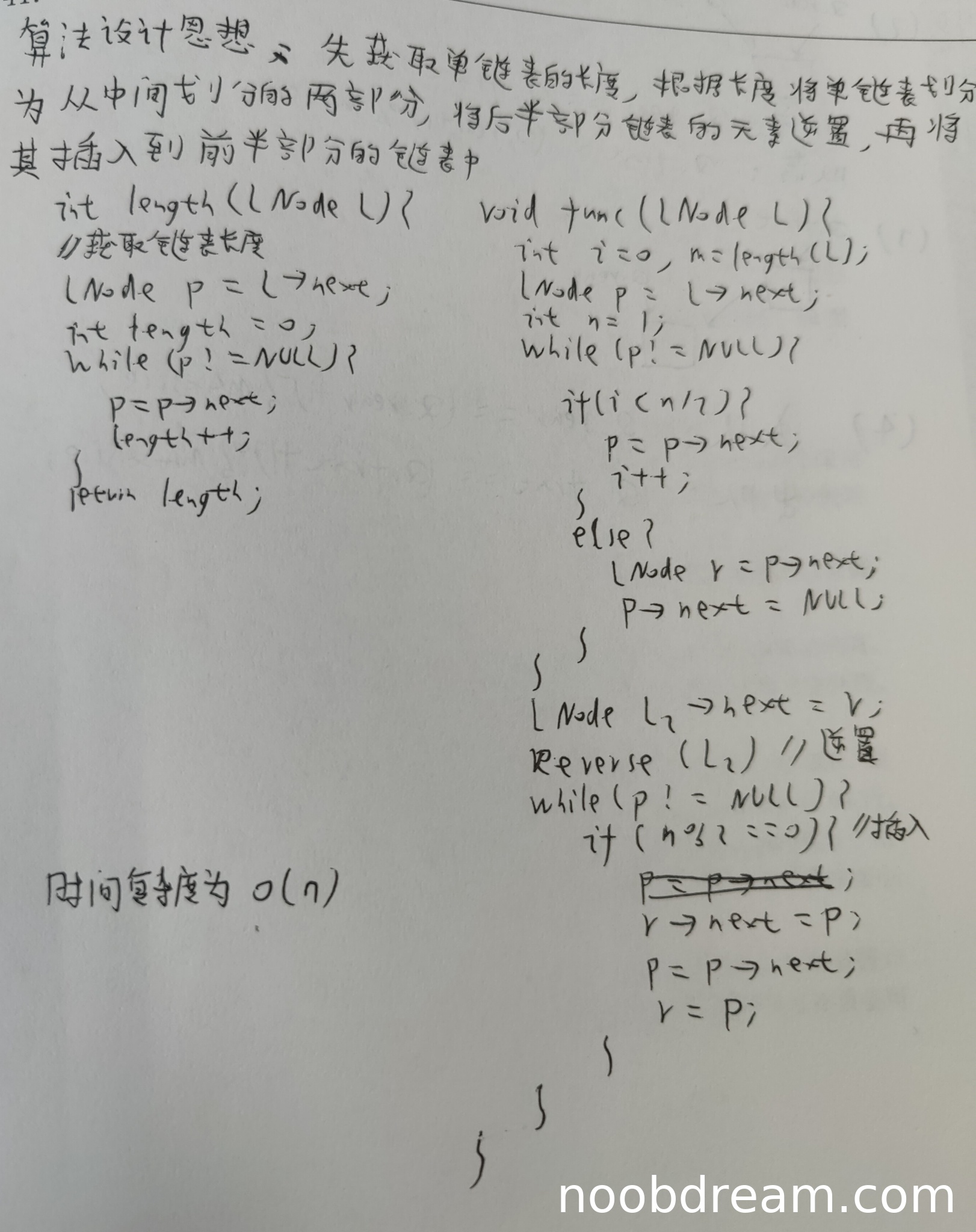 2. 第一个while循环中,当i >= n/2时,执行else分支,但这里只是将p->next置为NULL,并没有正确分割链表,且循环无法正常终止。