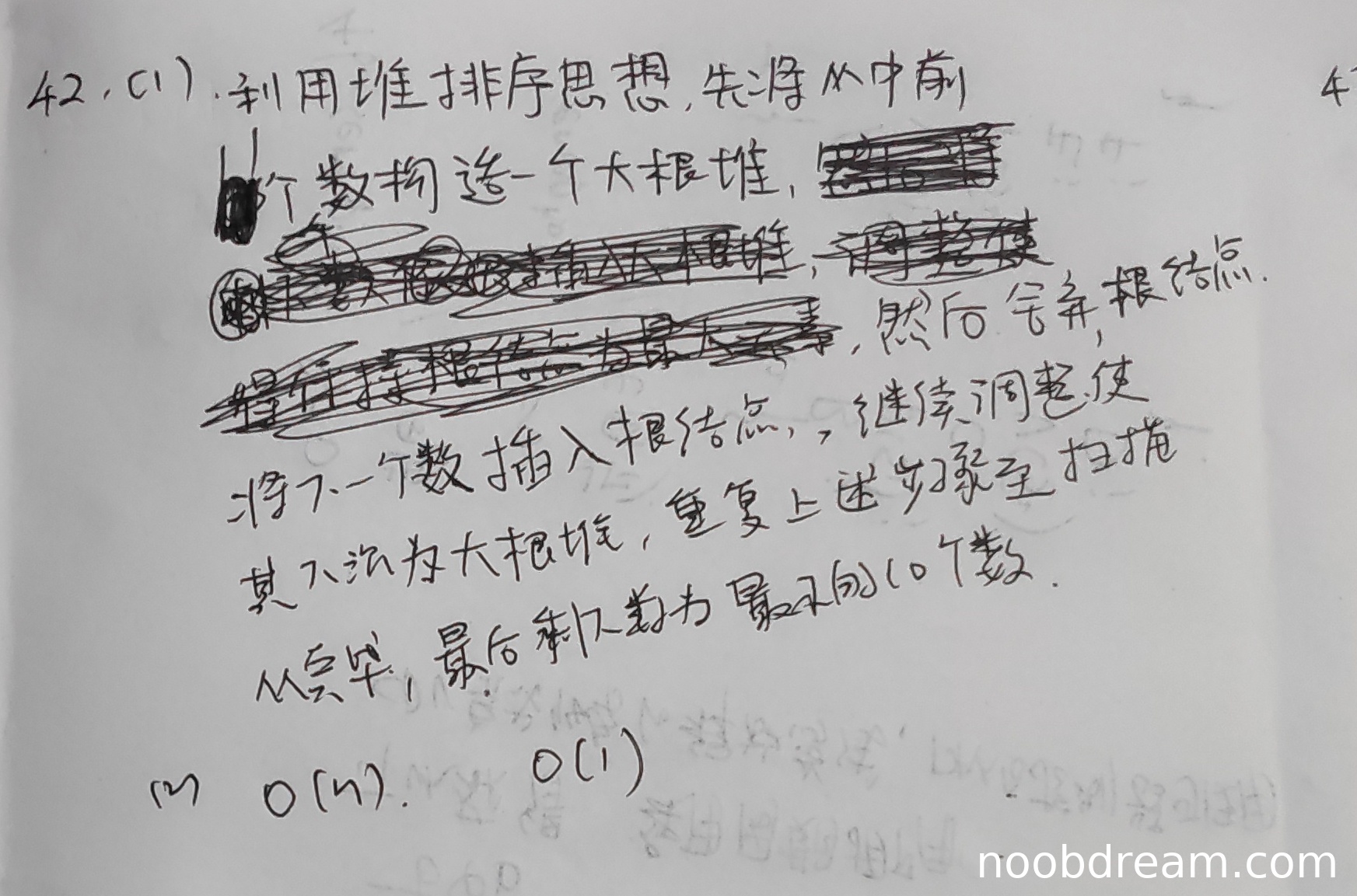 学生给出的时间复杂度O(n)和空间复杂度O(1)正确,符合堆方法在平均情况下的复杂度分析。因此得5分。