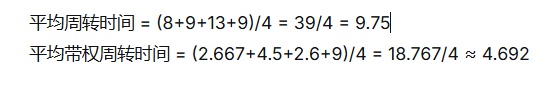 学生答案中P1、P2、P4的完成时间和周转时间正确,但P3的完成时间错误(学生为17ms,标准答案为13ms),导致P3周转时间错误(学生为13ms,标准答...