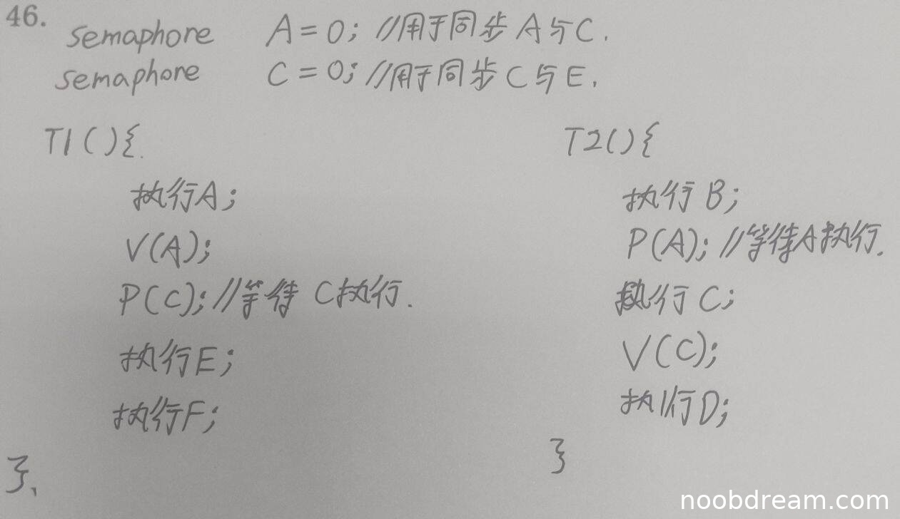 (3)线程T2的同步操作(满分3分)