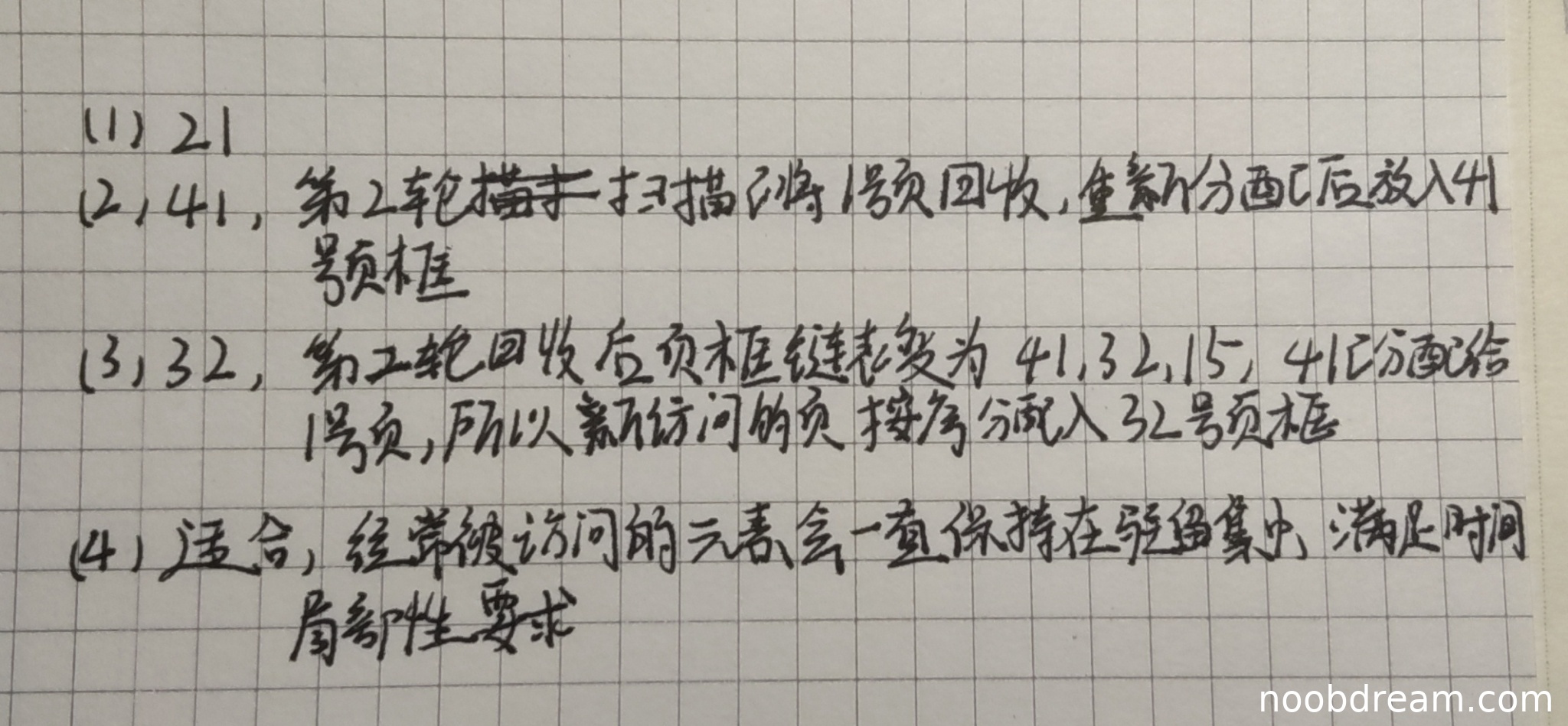 学生答案错误,标准答案为41,学生答案为32。理由部分存在逻辑错误:学生认为空闲链表为41,32,15,并从头部取出32分配,但实际链表头部应为41(因为页1被重新放回时使用的是32,所以32不在空闲链表中)。因此答案错误,理由错误。得0分。