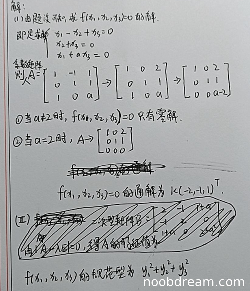 此外,学生只给出了a≠2时的规范形,没有讨论a=2时的情况,且给出的规范形对所有情况都相同,这是错误的。