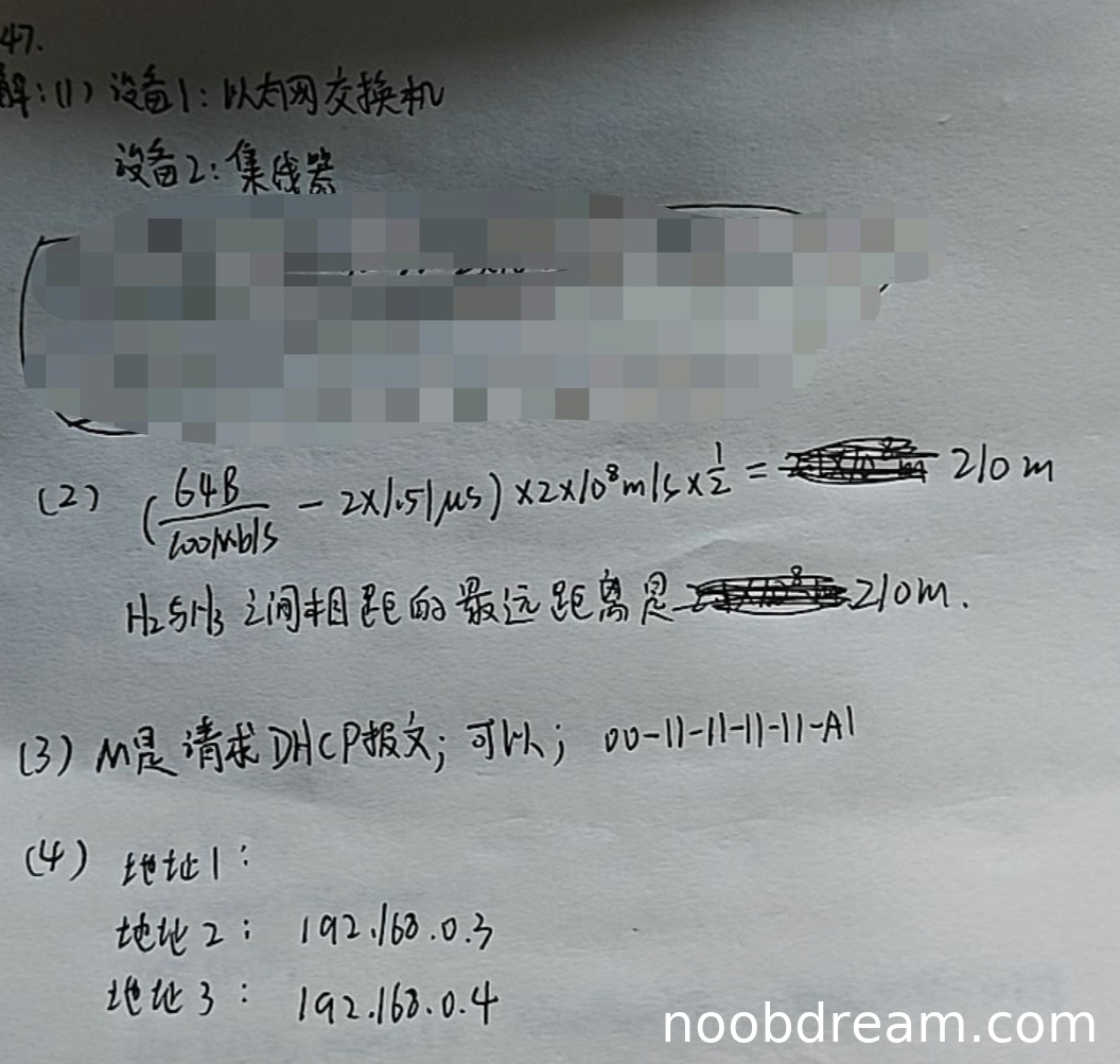 第三问:目的MAC地址回答"00-11-11-11-11-A1"错误,应为全1地址(FF-FF-FF-FF-FF-FF),扣1分。