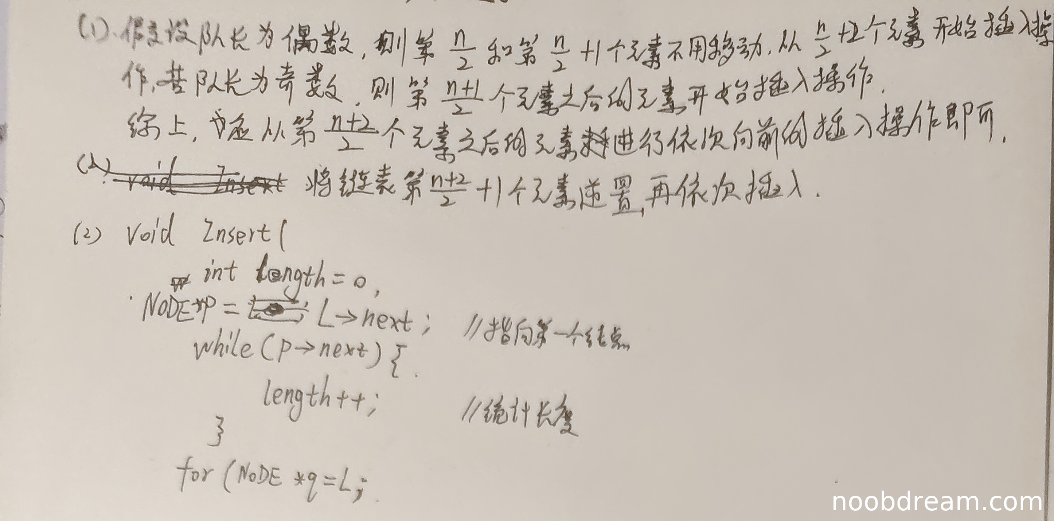 学生作答中给出的基本设计思想存在明显错误。学生提出根据链表长度的奇偶性来确定插入操作的起始位置,但这种方法无法实现题目要求的重新排列(a₁, aₙ, a₂, aₙ₋₁, ...)。具体问题包括:① 未说明需要找到链表中点;② 未涉及反转后半部分链表;③ 插入操作描述不清晰,无法实现目标排列。因此,基本设计思想不符合题目要求,得0分。