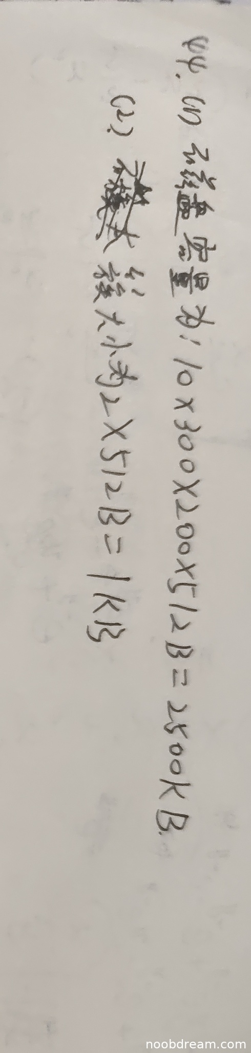 学生第一次识别结果计算错误(2500KB),但第二次识别结果正确(300000KB或300MB),且与标准答案一致。由于识别可能存在误差,但核心计算正确,因此得2分。