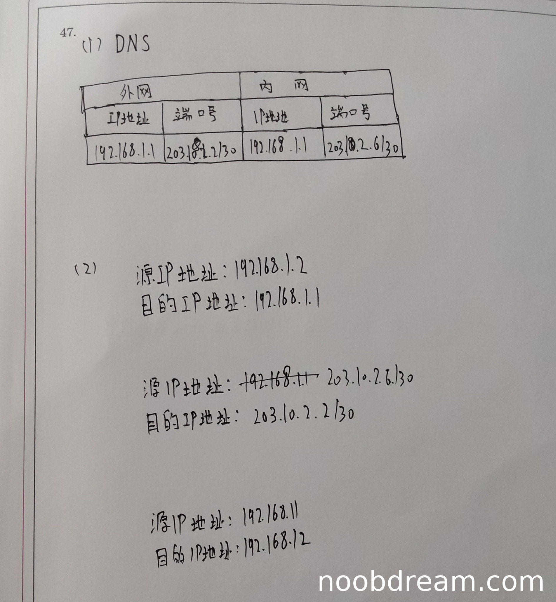 - 内网和外网IP地址都写成了192.168.1.1和203.10.2.6,没有正确区分内外网地址