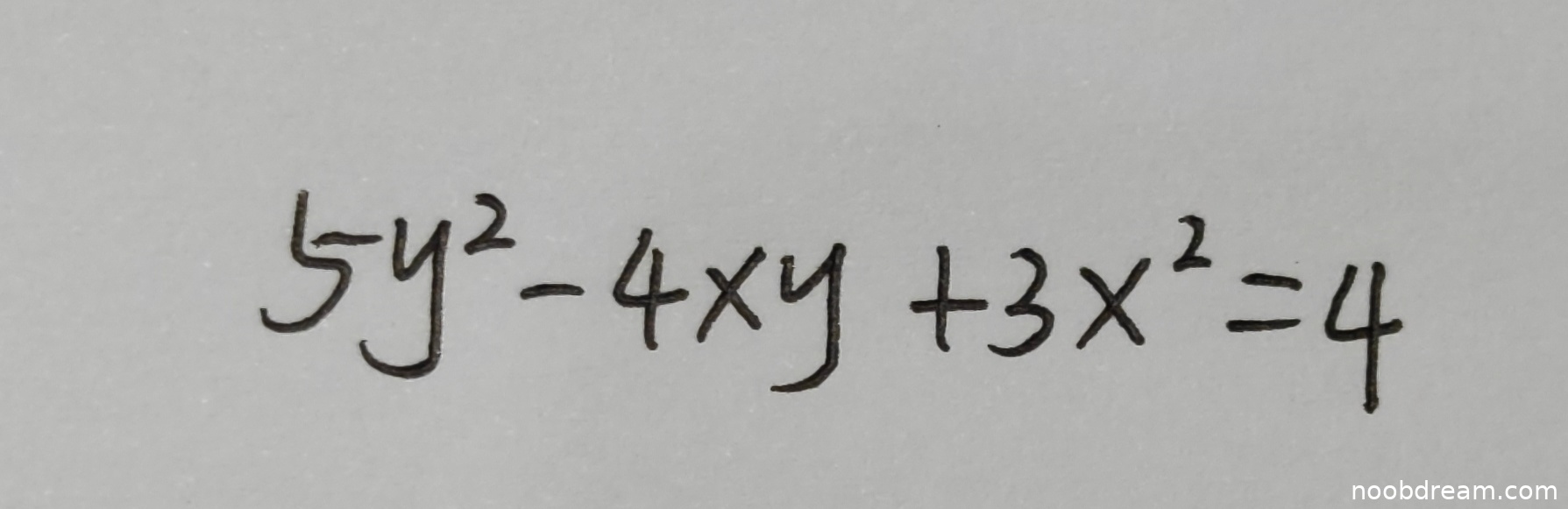 学生给出的解为 $5y^{2}-4xy + 3x^{2}=4$,而标准答案为 $3x^{2}-4xy + 5y^{2}=4$。这两个方程实际上是等价的,只是各项的顺序不同。方程 $5y^{2}-4xy + 3x^{2}=4$ 可以重新排列为 $3x^{2}-4xy + 5y^{2}=4$,与标准答案完全一致。因此,学生的答案在数学上是正确的,并且满足题目条件 $y(1) = 1$(代入验证:$3(1)^2 - 4(1)(1) + 5(1)^2 = 3 - 4 + 5 = 4$,成立)。根据评分要求,思路正确且答案等价于标准答案,不扣分。此外,识别结果两次一致,且没有逻辑错误或误写问题。