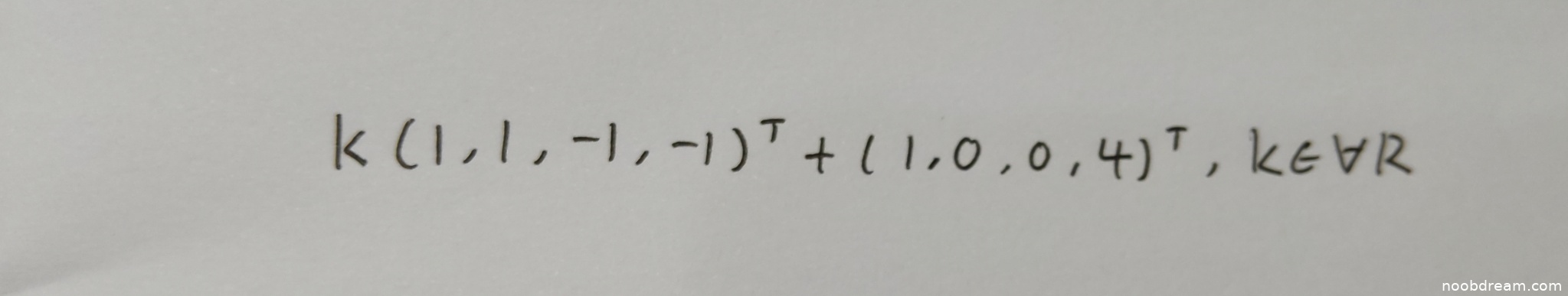 学生答案:\(k(1,1,-1,-1)^T+(1,0,0,4)^T,k\in\mathbb{R}\)