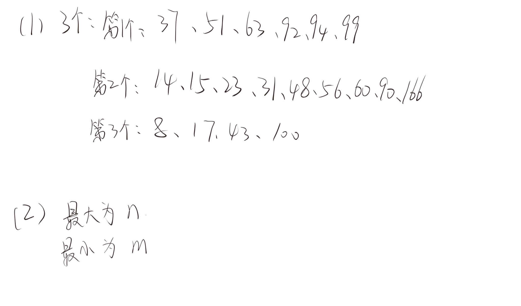 学生答案正确指出最大长度为n,最小长度为m,与标准答案完全一致。虽然表述较为简洁,但核心逻辑正确。根据评分规则,思路正确不扣分。得2分。