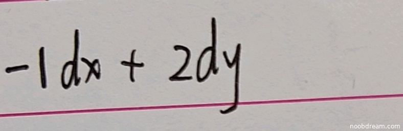 学生答案为“-1dx + 2dy”,与标准答案“-dx + 2dy”等价(因为-1dx就是-dx)。该答案正确表达了函数在点(0,1)处的全微分形式,计算过程和结果都正确。根据评分要求,答案正确应给满分4分。