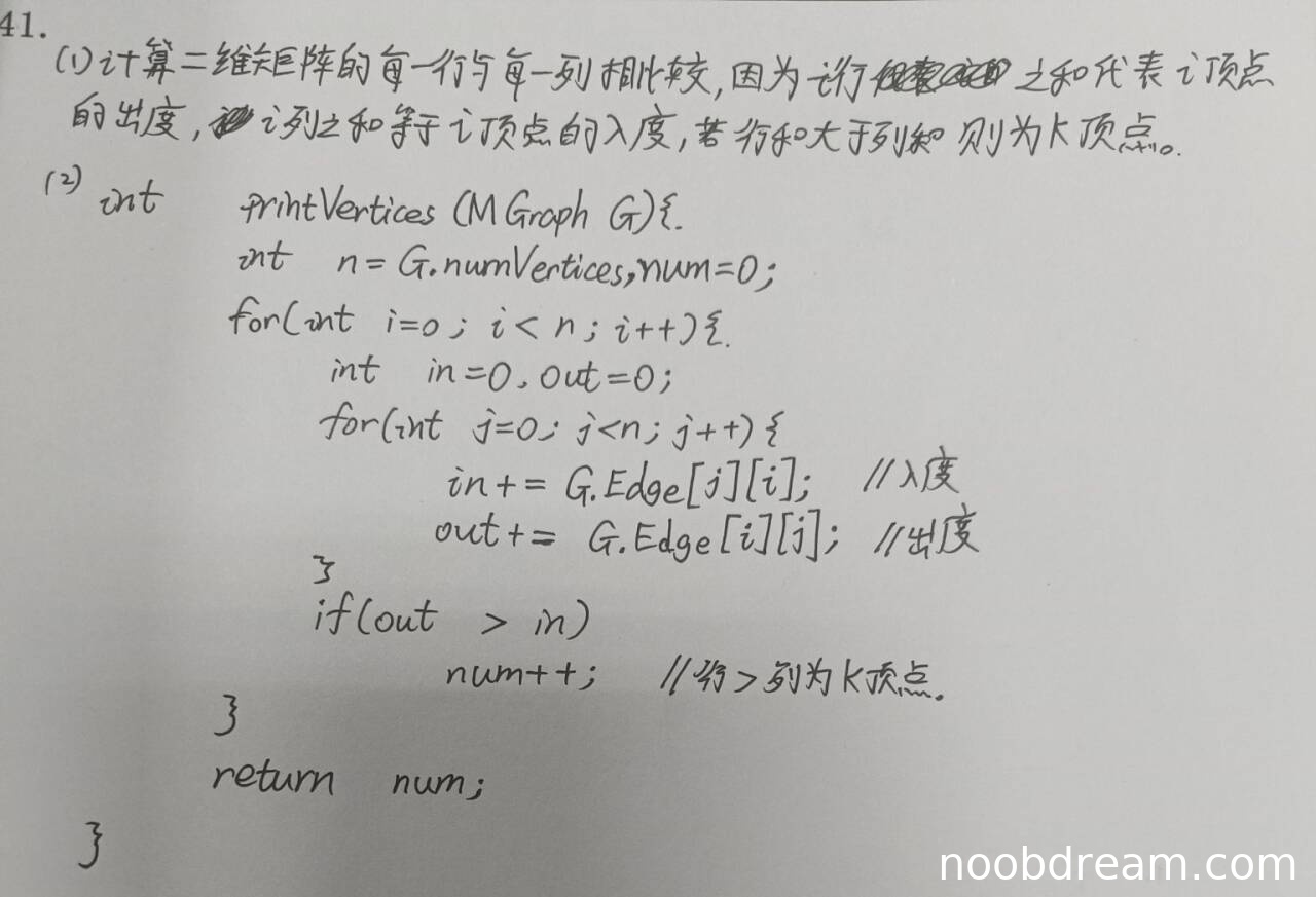 2. 代码缺少输出K顶点名称的语句(标准答案中需要输出顶点名称),这是一个逻辑错误,因为题目要求"输出G中所有K顶点"。扣3分。