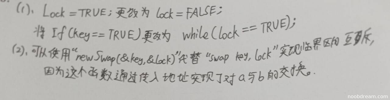 学生认为可以使用newSwap函数代替swap指令,但标准答案明确指出不能,因为swap是原子操作而函数调用不是。学生未能识别出关键区别(原子性),判断错误。因此本小题得0分。