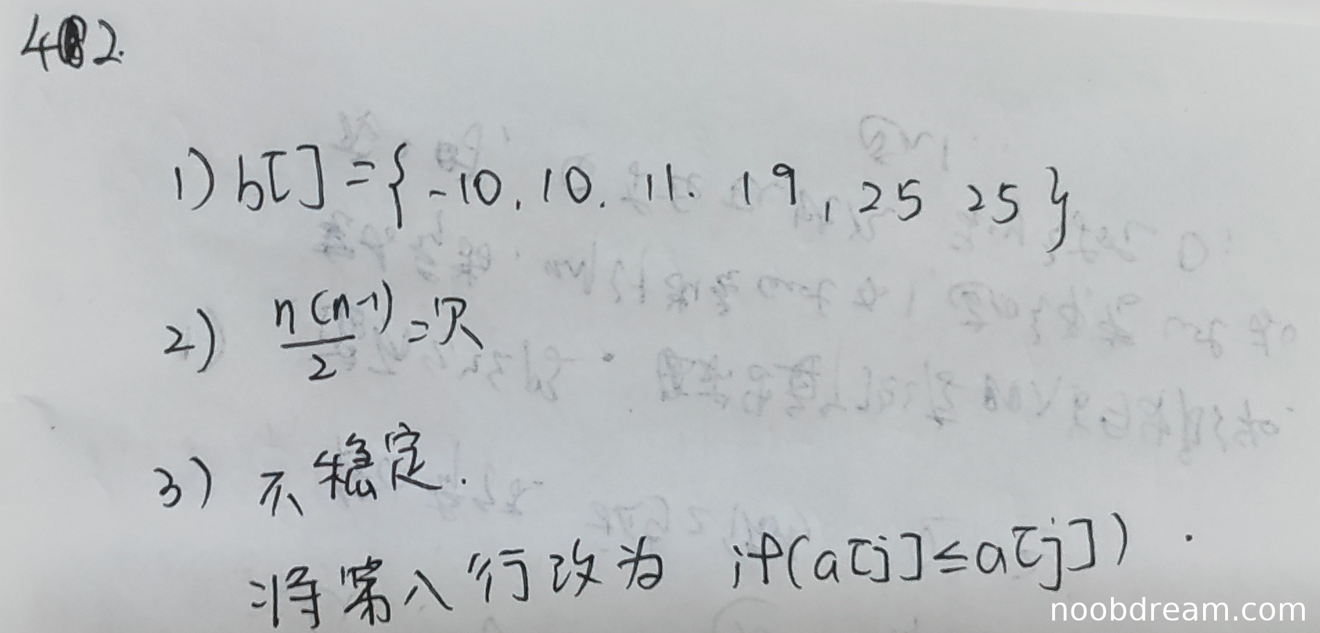 学生答案正确,比较次数为n(n-1)/2次,与标准答案一致。得2分。