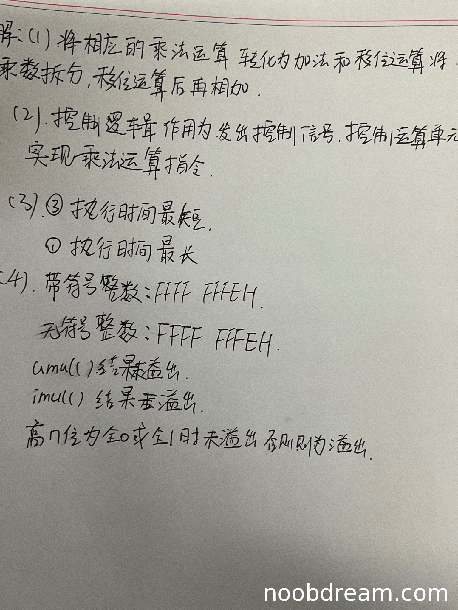 第二问:学生回答umul()结果溢出、imul()结果未溢出,与标准答案相反(标准答案:umul()不溢出、imul()溢出)。理由错误,扣2分。