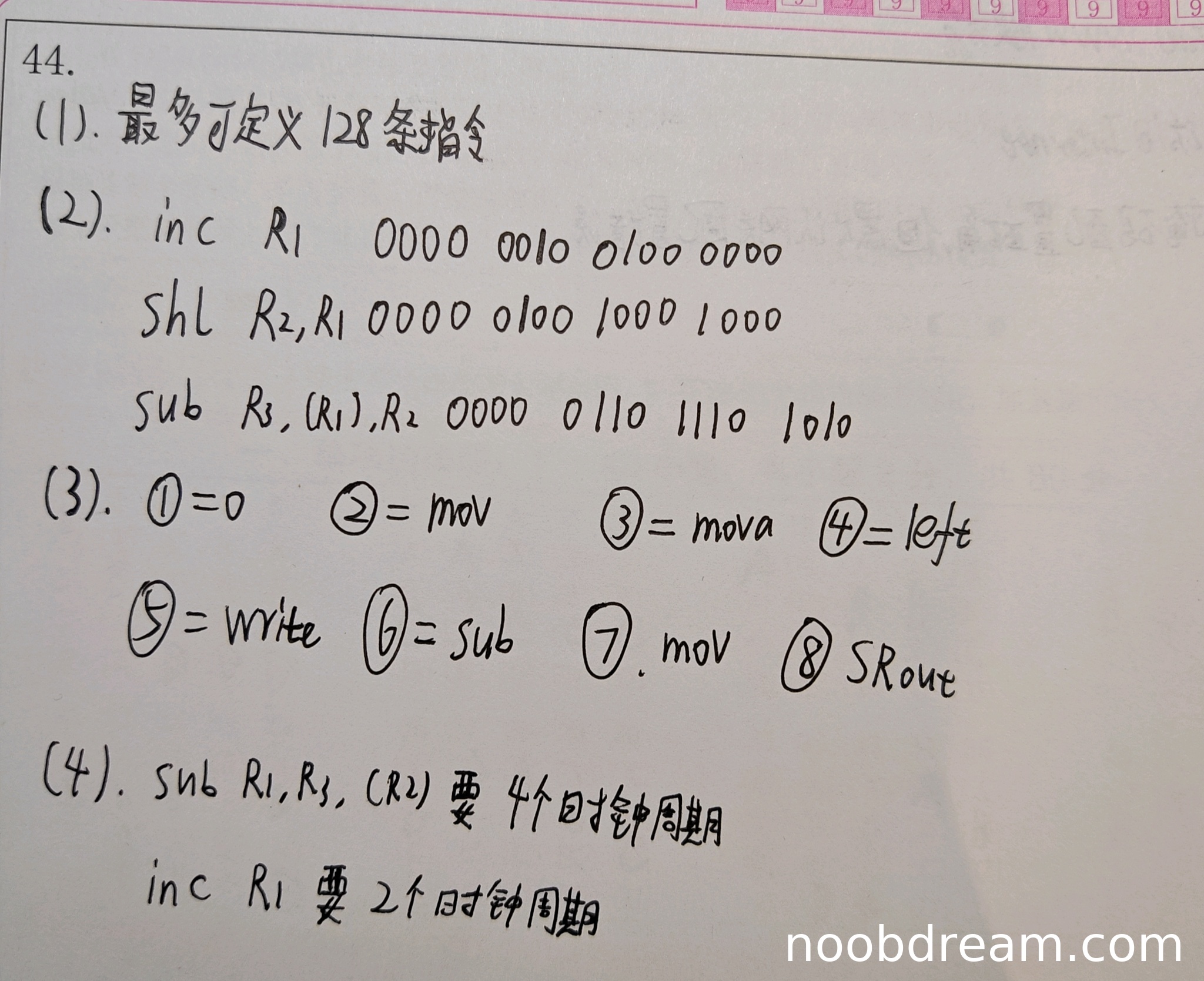 - sub R1,R3,(R2) 需要4个时钟周期,正确。
