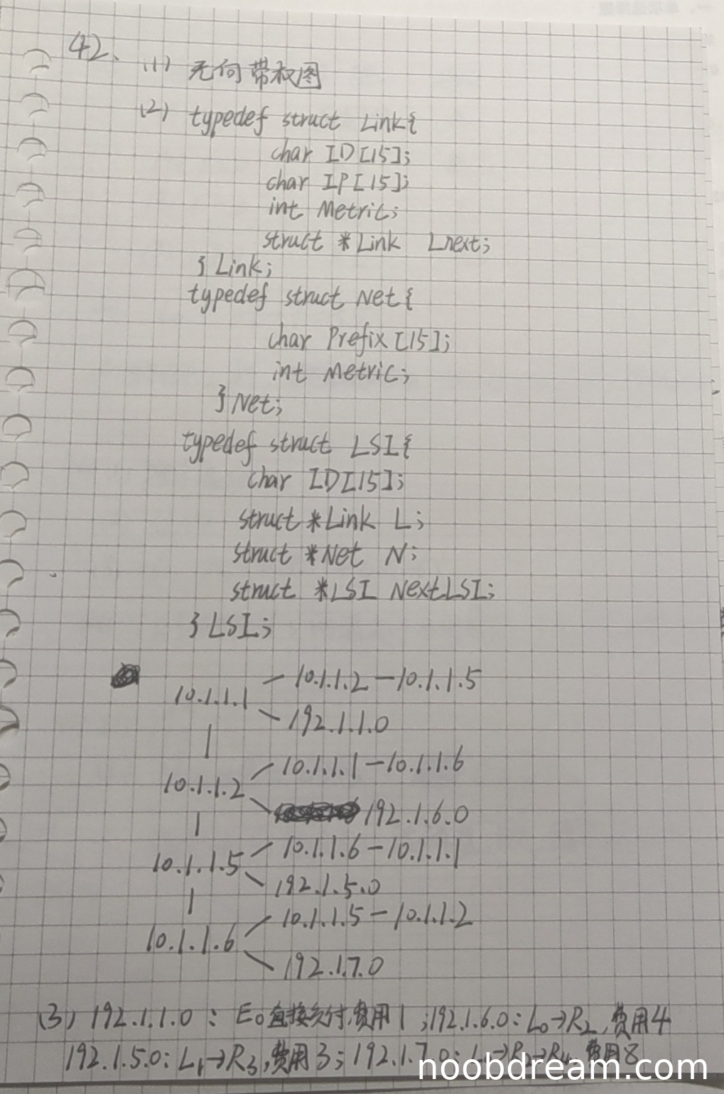 学生设计了链式存储结构,包含Link和Net两种类型的结点,基本思路正确。但存在以下问题: