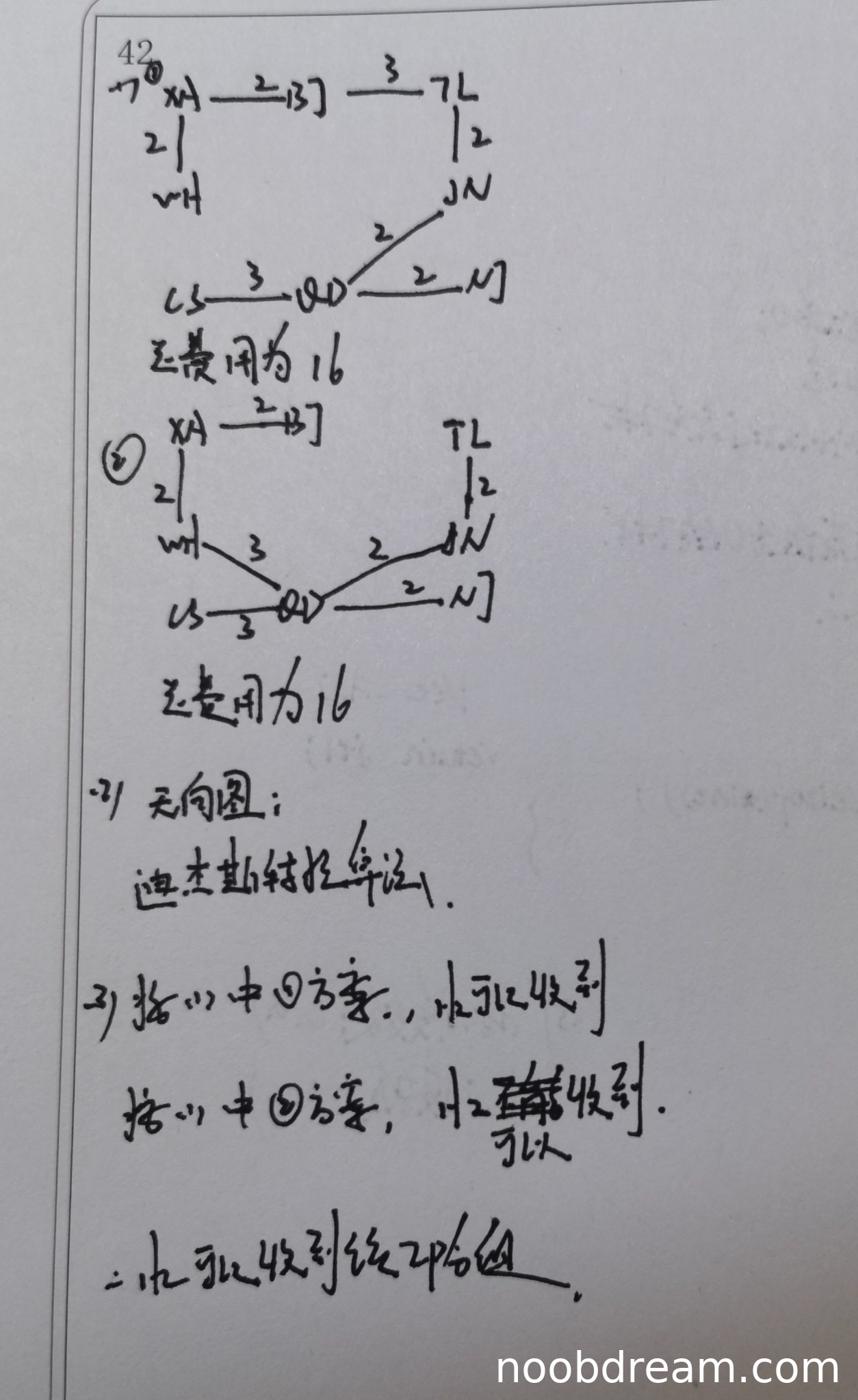 学生给出了两种方案,总费用均为16,与标准答案一致。虽然节点名称存在识别错误(如"B3"应为"BJ","7L"应为"TL","00"应为"QD"等),但根据上下文可判断为误写,不影响核心逻辑。因此本小题得4分。