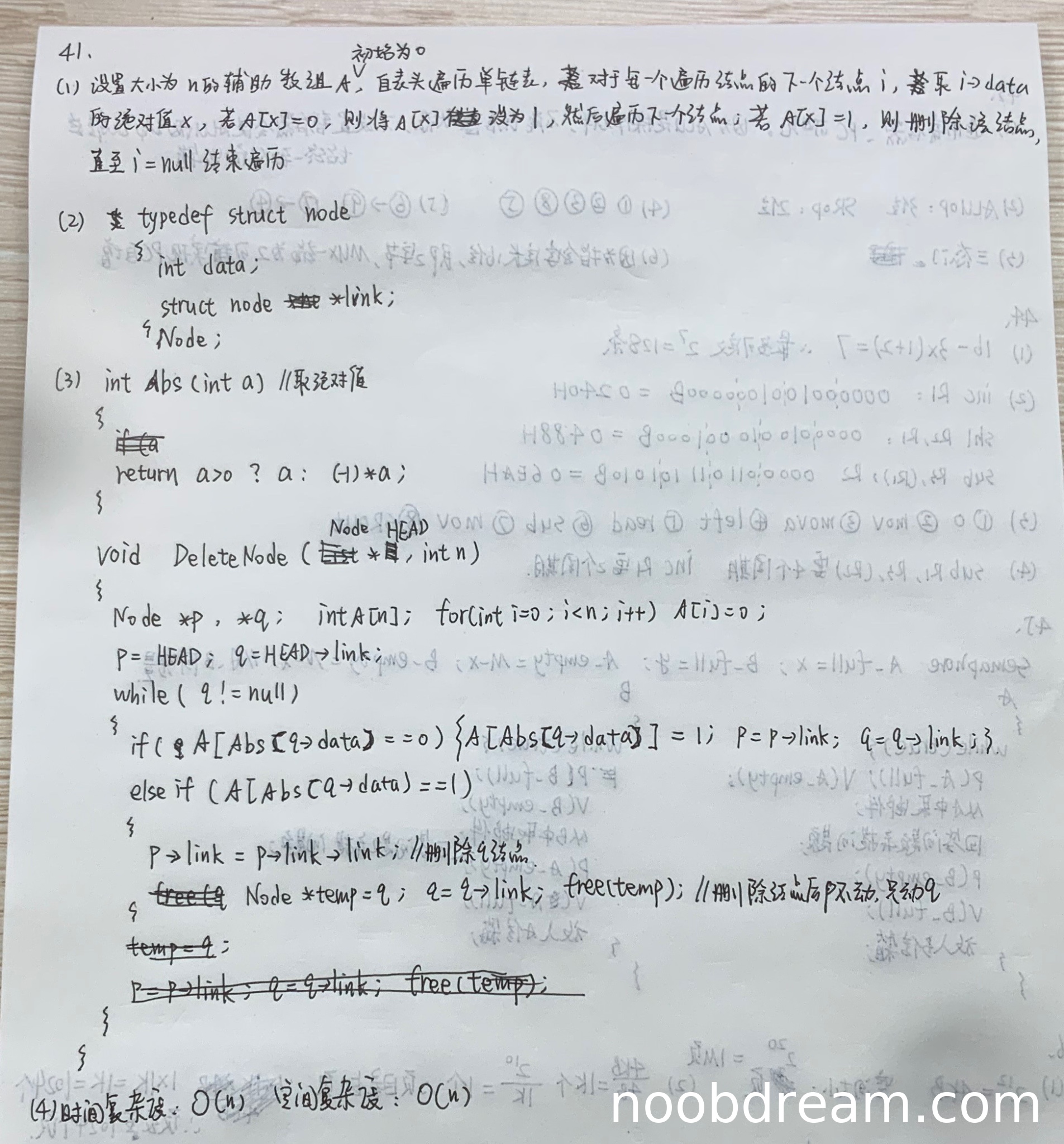 扣分:逻辑错误扣2分(主要扣分点在于删除结点的错误操作),其他小问题不扣分。
