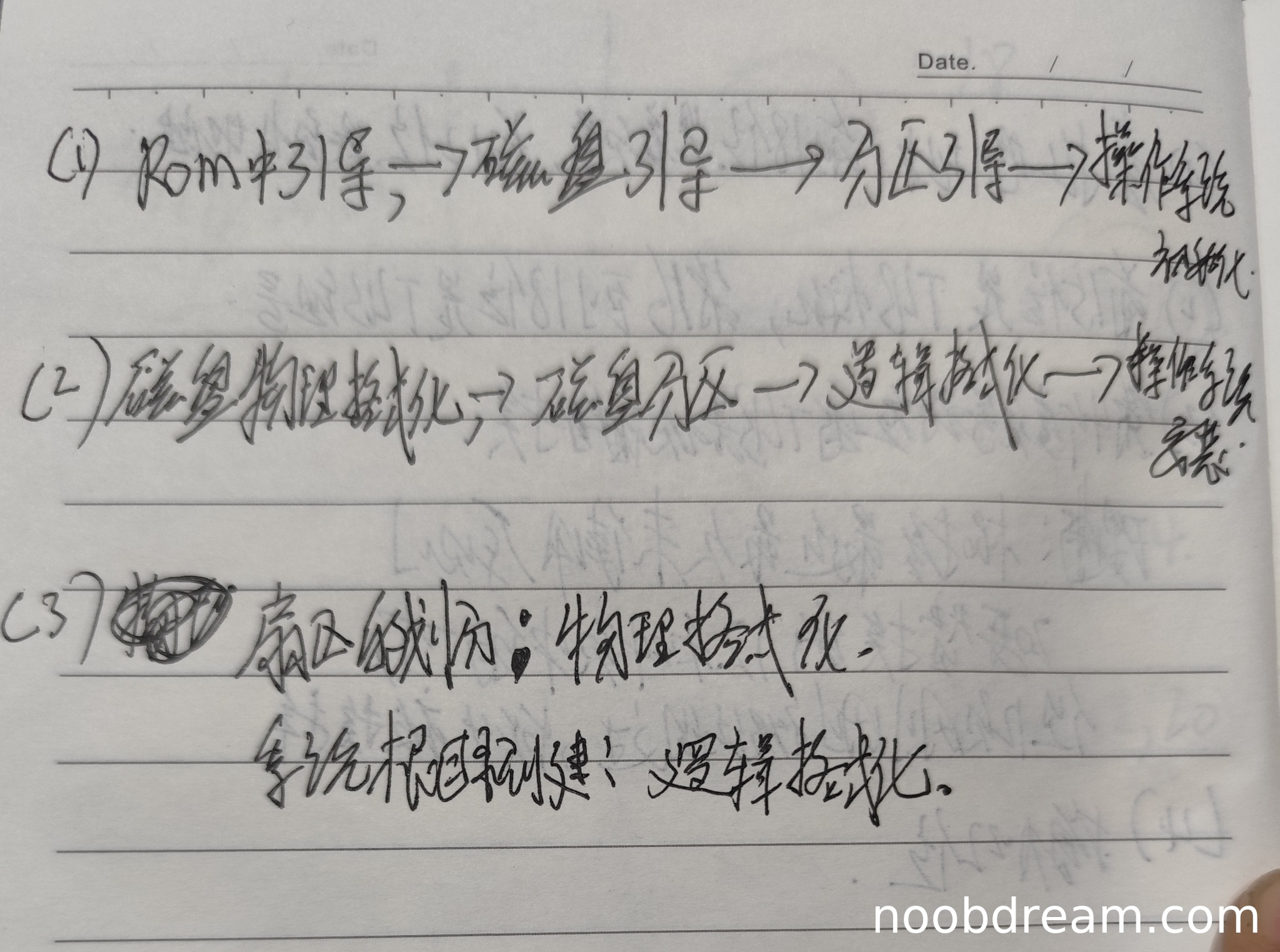 学生作答的两次识别结果都正确给出了执行顺序:ROM中的引导程序 → 磁盘引导程序 → 分区引导程序 → 操作系统的初始化程序。顺序完全正确,与标准答案一致。因此得3分。