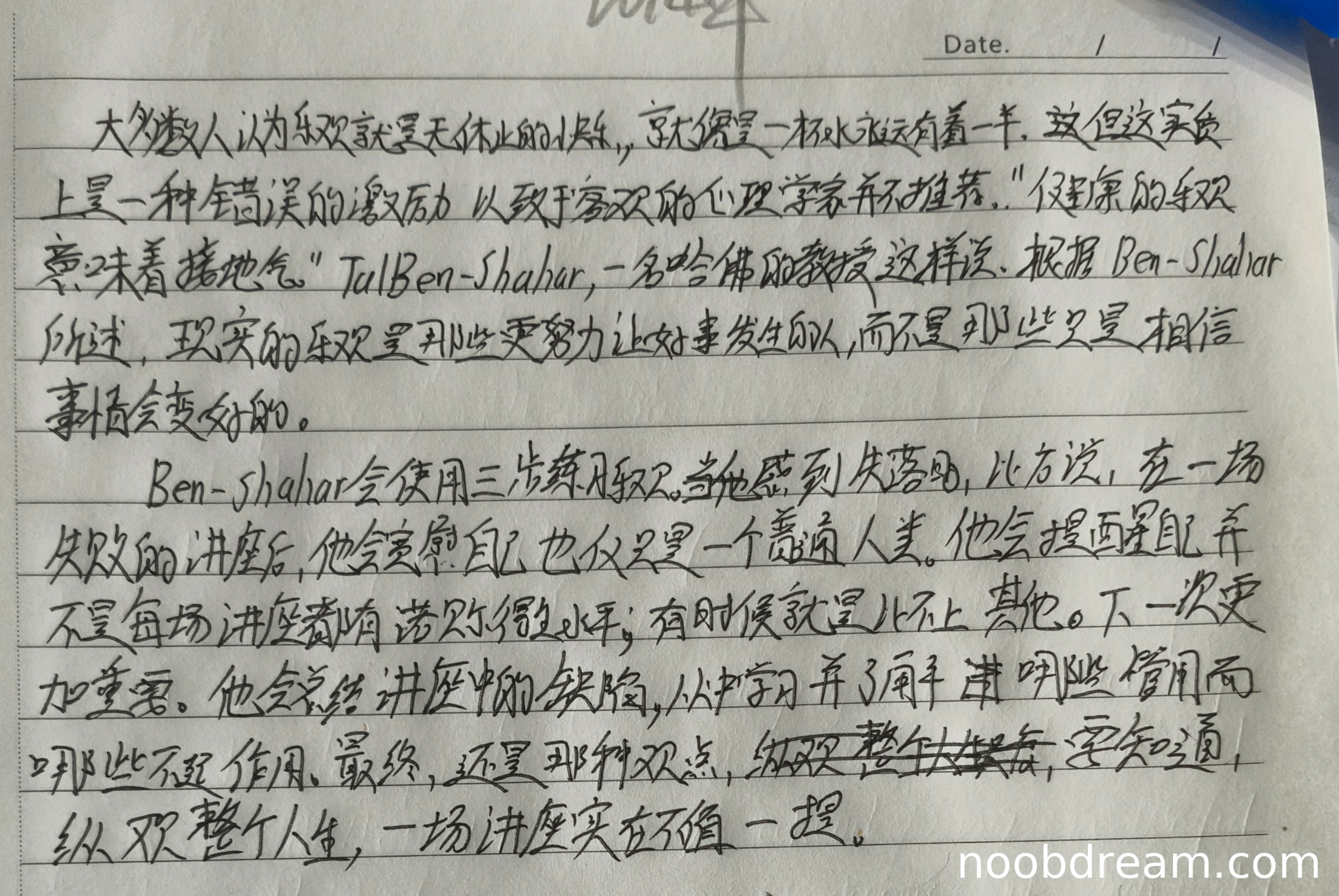 - "Ben-Shahar会使用三步来乐观"表达不够完整,应明确是"保持乐观的方法/练习"(-0.5分)