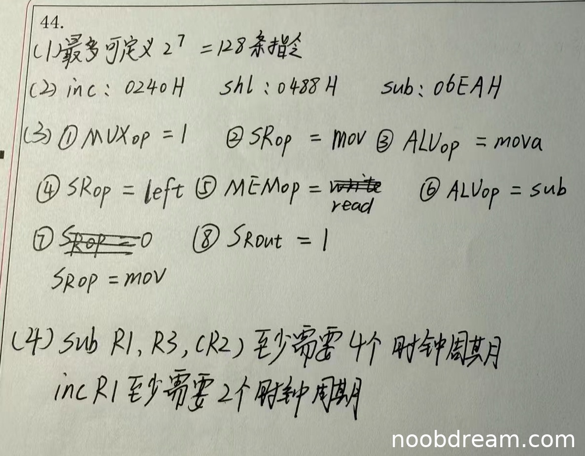 此外,学生额外写了SRop = mov,但未对应标号,不扣分。