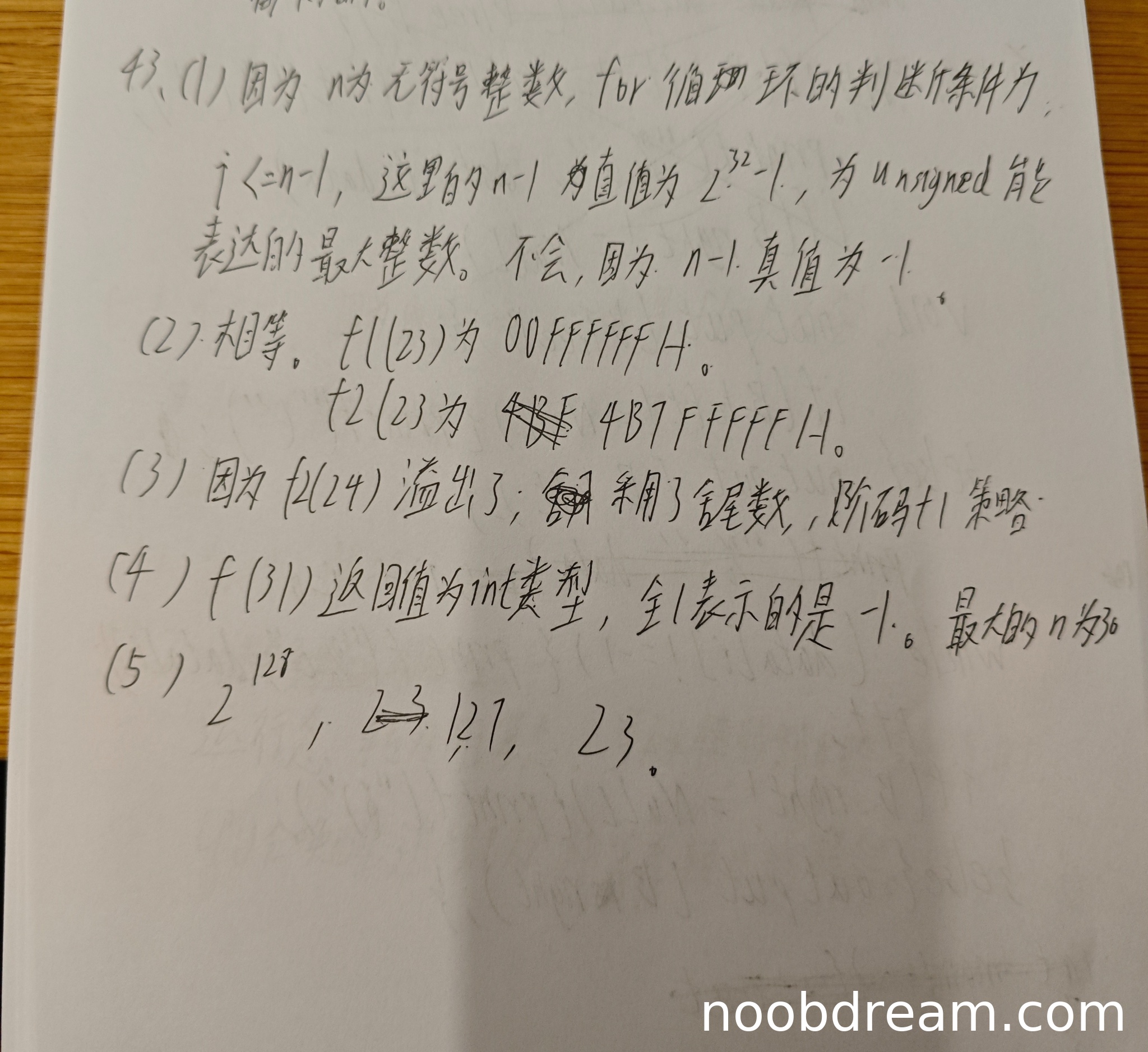 学生正确解释f1(31)返回-1的原因(全1解释为-1),并给出最大n=30,正确。得2分。