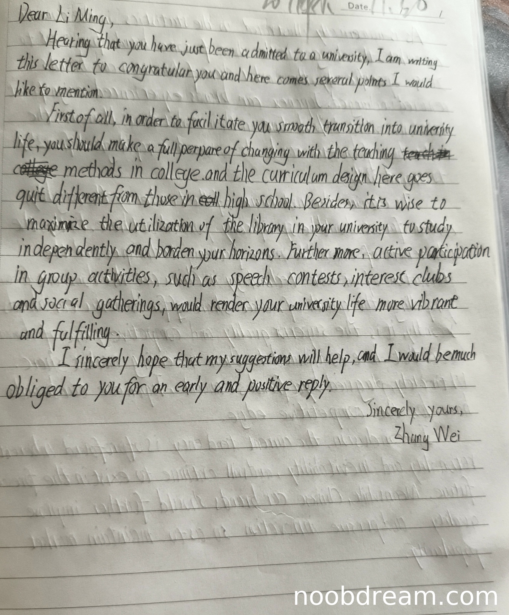 总体评价:这是一篇优秀的书信写作,内容完整,结构清晰,建议具体实用。虽然存在少量语言错误,但不影响整体表达效果,属于第五档(优秀)水平。