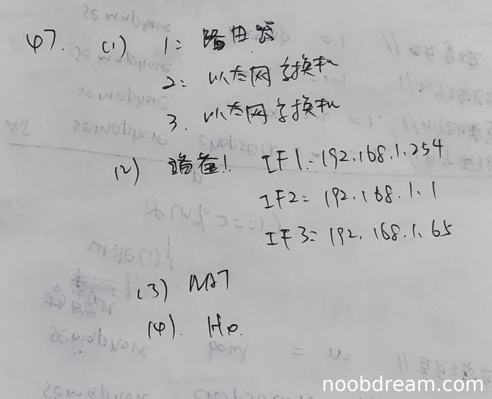 学生答案:设备1为路由器,设备2和3为以太网交换机。与标准答案完全一致。