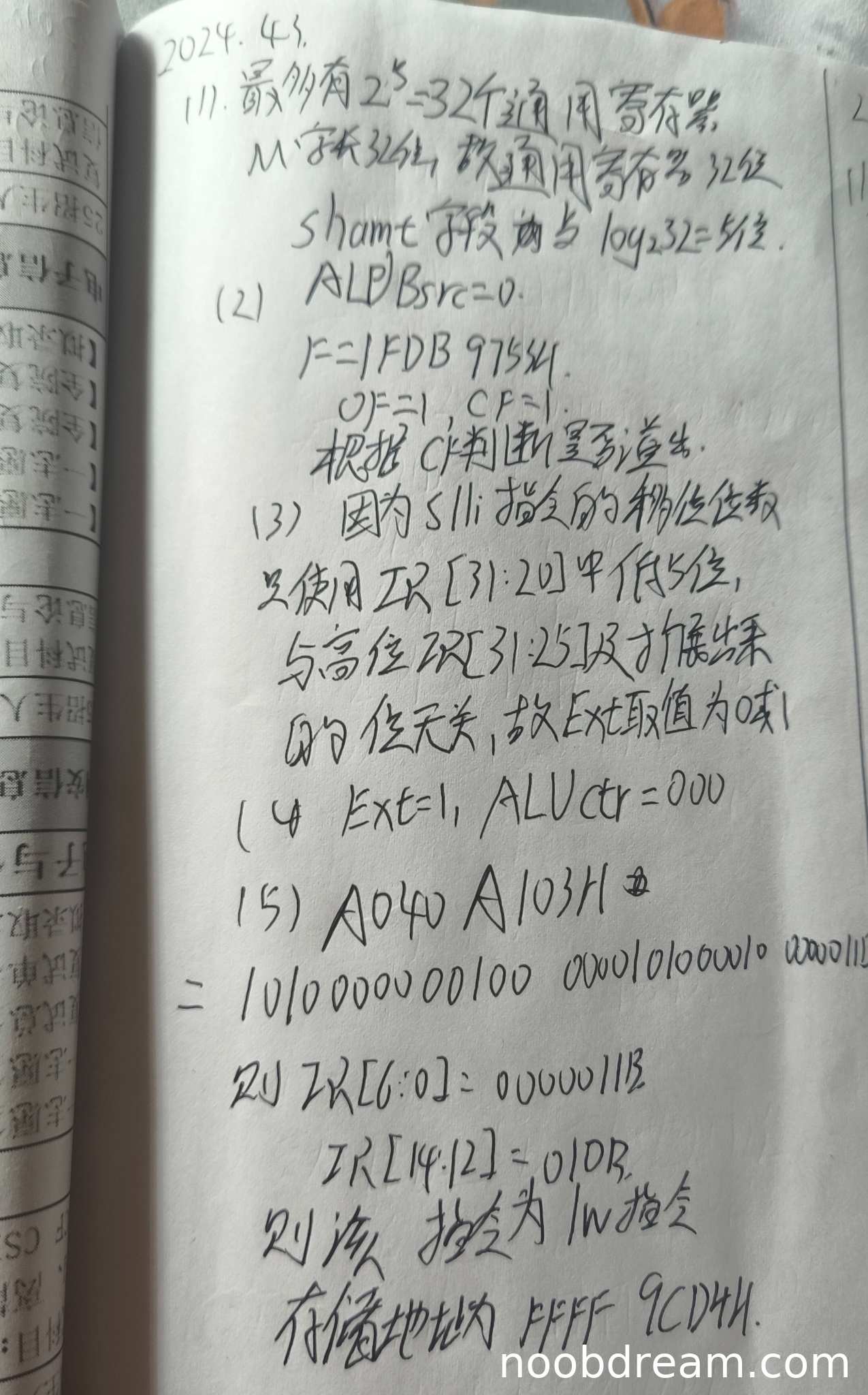 学生回答:最多有32个通用寄存器,shamt字段占5位是因为log₂32=5。