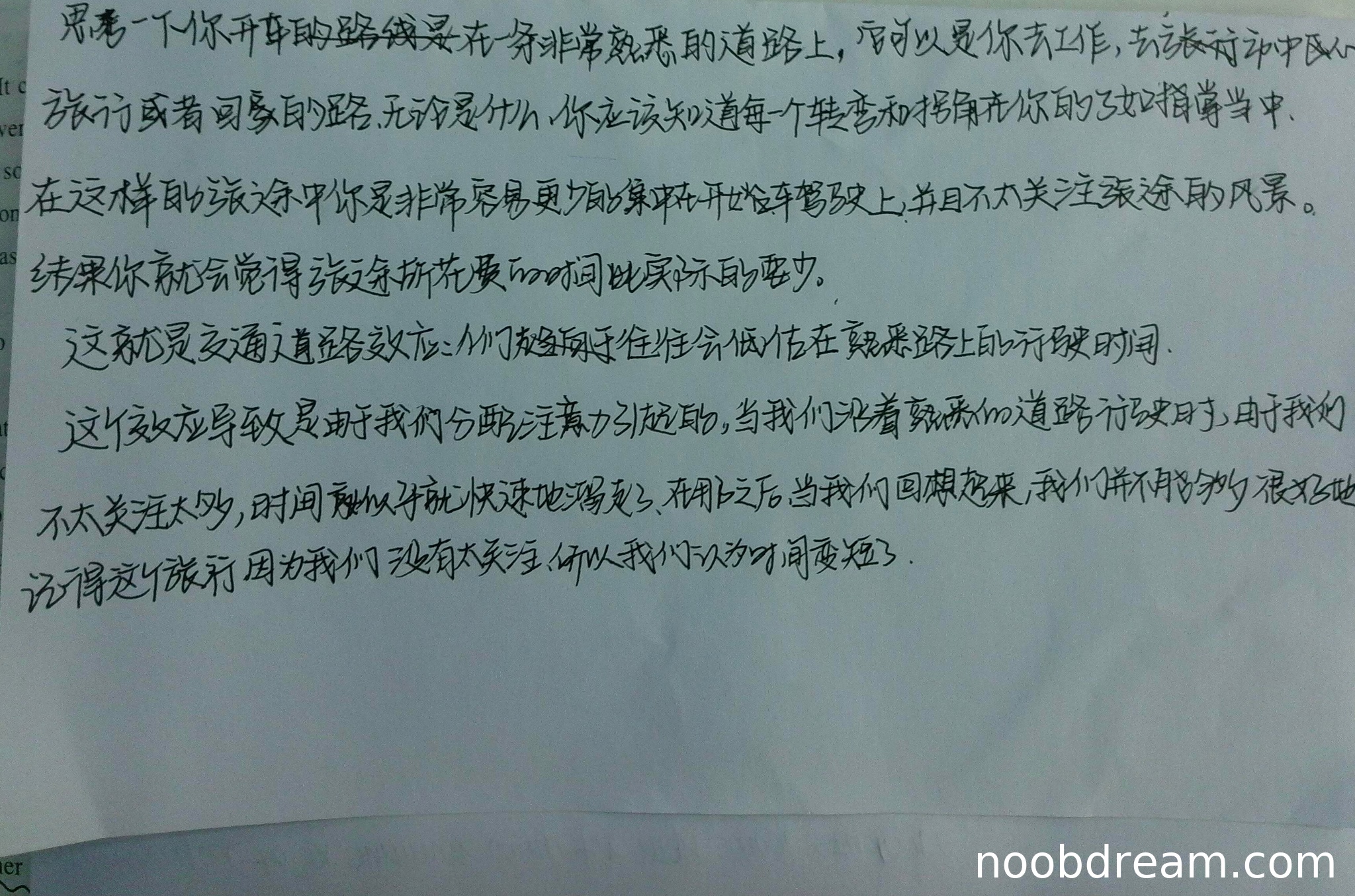 - “pay little attention to the passing scenery” 标准译为“很少注意沿途的景色”,学生译为“不太关注旅途的风景”,意思接近,但“passing”的动态感稍弱,此处不扣分。