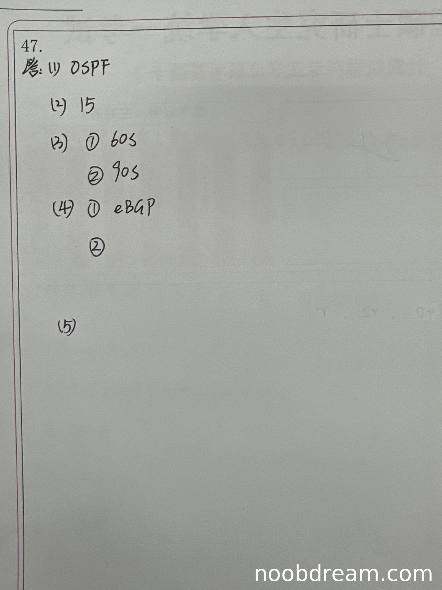 学生回答“15”。标准答案为16。TTL初始值应至少设置为路径最大路由器数+1,AS3内通信不超过15个路由器,即最多经过15个路由器,因此TTL至少为16才能确保到达。学生答案15是错误的逻辑。扣1分,得0分。
